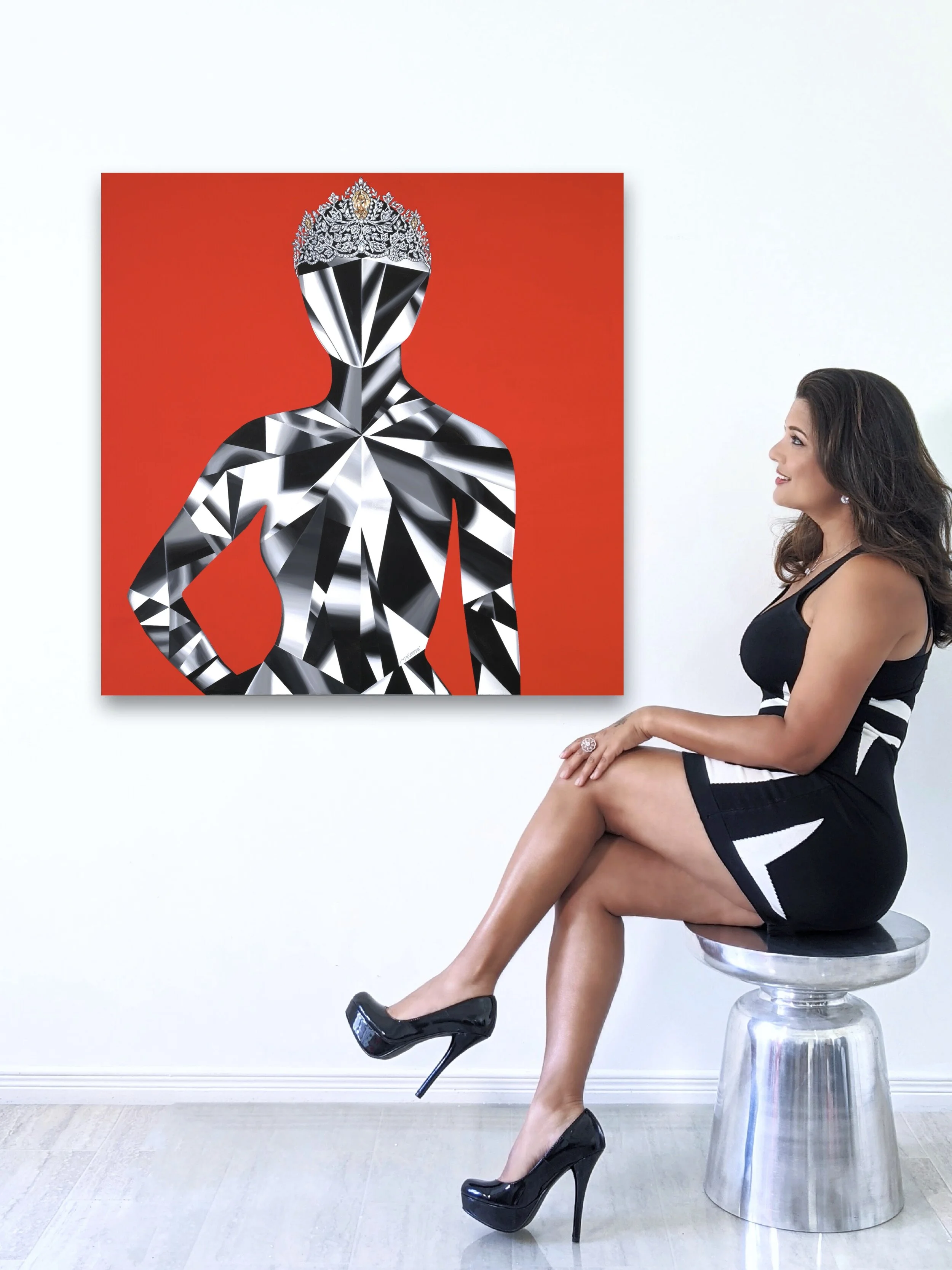 The Mouawad Miss Universe ‘Power of Unity ‘ Crown painting by Reena Ahluwalia. 30 x 30 inches. ©Reena Ahluwalia. [Sold]